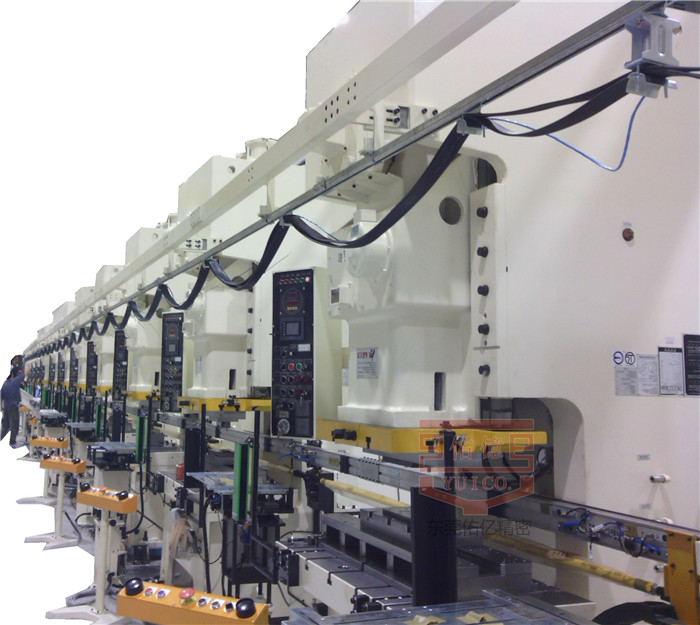 市面上有許多種形式的沖壓機械手,例如有:三次元機械手,單機多工位機械手,多機連桿式機械手。每種機械手所具備的功能也是不一樣的。多機連桿式機械手在汽車零配件沖壓中使用較多,可以搭配開卷機,整平機,伺服送料機等自動送料設備實現與多臺沖床連線實現多個工序同步沖壓生產。