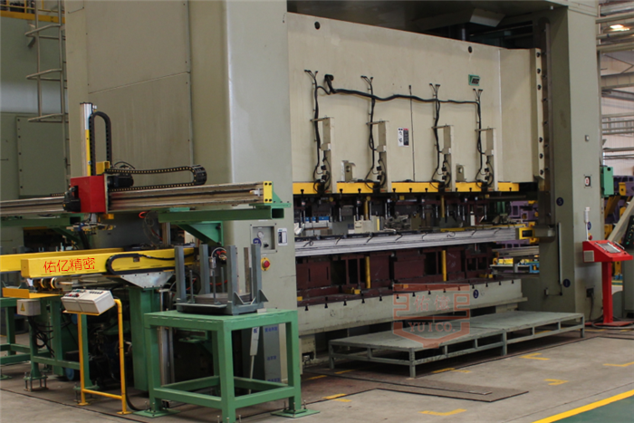 佑億三次元機械手作用:是在自動化設(shè)備的基礎(chǔ)上,根據(jù)沖壓生產(chǎn)特點,專門為實現(xiàn)沖壓自動化無人生產(chǎn)而研發(fā)的設(shè)備。能取代人工在各個沖壓工位上進行物料沖壓、搬運、上下料等工作,整條生產(chǎn)線效率達到5秒。本自動化設(shè)備對于沖壓等重復(fù)性、危險性、節(jié)拍高的加工行業(yè),在節(jié)約人力勞動成本,提高人工及設(shè)備安全性,保持產(chǎn)品產(chǎn)能、 質(zhì)量、工藝穩(wěn)定性等方面是現(xiàn)代化工業(yè)化“開拓創(chuàng)新”的重要精神體現(xiàn)。柔性沖壓自動線大多由一臺雙動拉伸壓力機或多連桿單動拉伸壓力機和4~5臺單動壓力機 組成流水線,生產(chǎn)大型車身覆蓋件,安全性高,沖壓質(zhì)量好。生產(chǎn)線上布置自動化上下料系統(tǒng)。